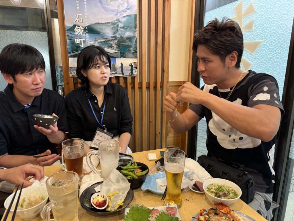 研修終了後、小田島社長とEBILABのスタッフには夕食会やその後の二次会にも参加していただき、今回の参加者にさまざまなアドバイスをしていただきました。