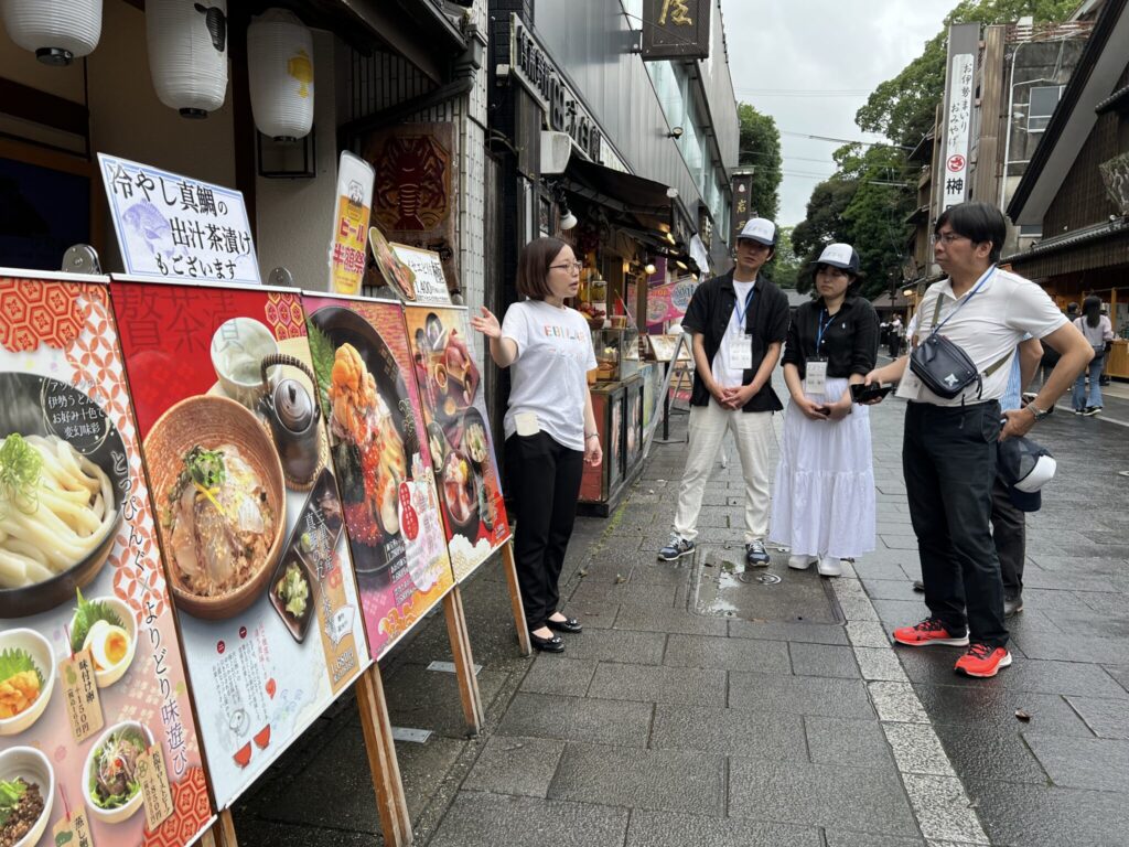そこで、この地域の集客力の源である伊勢神宮に参拝して、「伊勢神宮に参拝するとどのような気持ちになるのか」を知り、また、観光客と同じように参道を散策して、「周囲にどのようなお店があるのか」「どのような価格で販売しているのか」ということをDay1で体感しました。