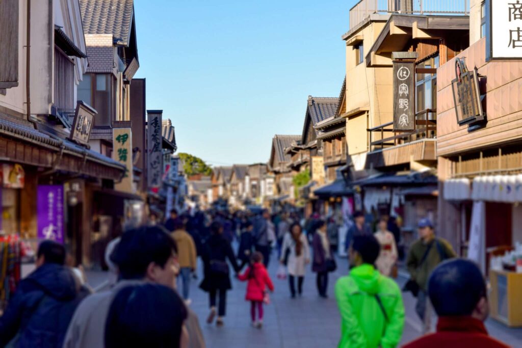 伊勢神宮参拝後、参道を散策して、ゑびや大食堂の周辺環境や他の食堂の売り物などを理解しました。