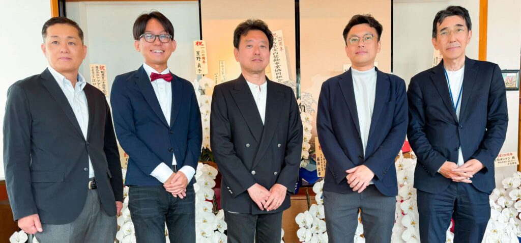 (左から、株式会社ホシケン専務取締役直江正博氏、DX学校校長梅崎健理、株式会社ホシケン代表取締役星野貴洋氏、株式会社ナブアシスト・カスタマサクセス推進課課長小林嘉一郎氏、株式会社ナブアシストDX学校前橋校IT導入診断士戸塚直重氏)
