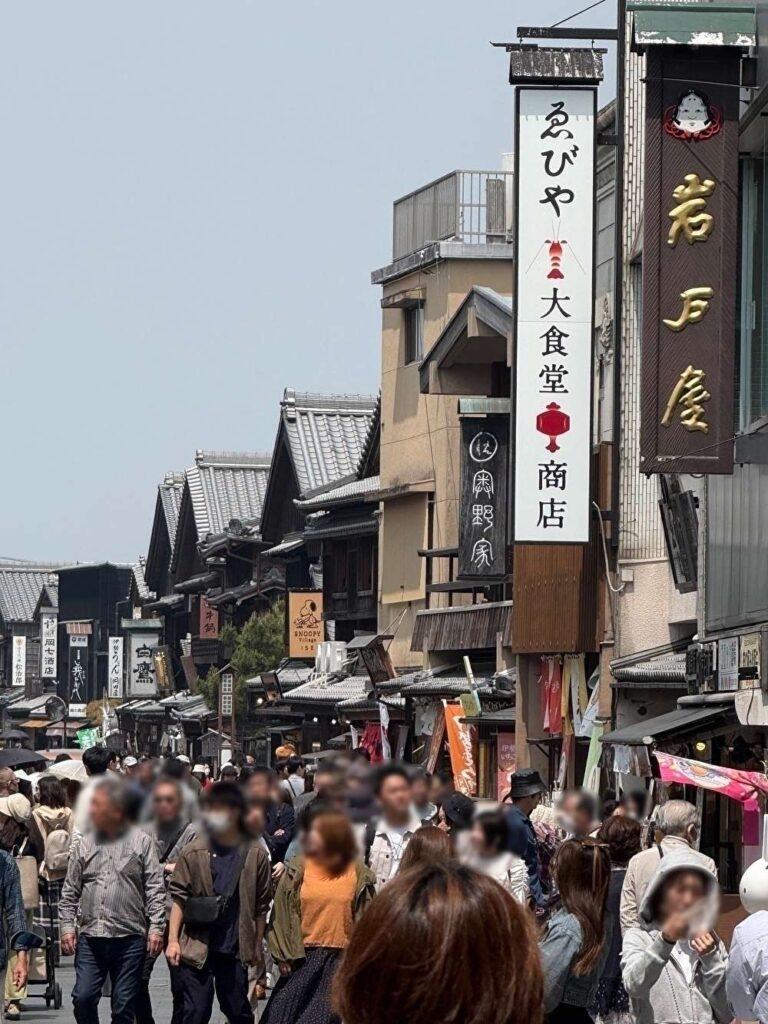 この写真は、我々が研修に訪れた2025年4月25日金曜日の午後のゑびや大食堂の前の人出です。この大量の人出は天気や伊勢神宮で行われるイベントでどう変化するのか、お店の前を通る人のうち何%が来店するのか、どんな層の人が来店してどんなメニューが好まれているのか、テーブルあたりの滞在時間はどのくらいなのか、といったことがわかるツールが見つからなかったのです。だから自力で作ったのです。