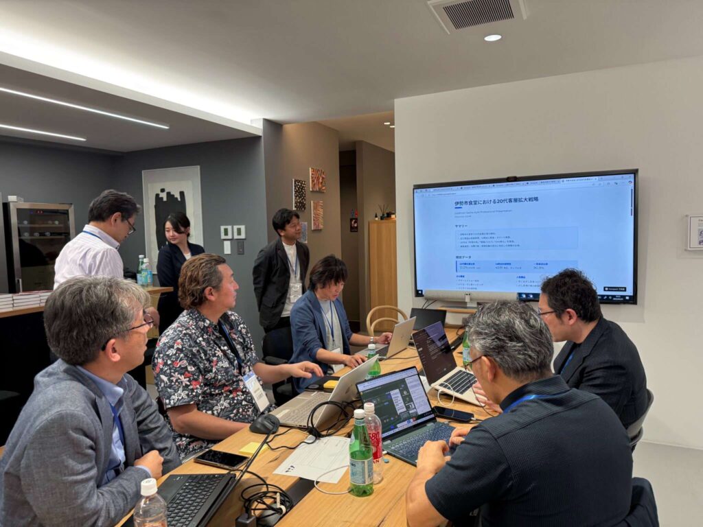 DX学校は、全国のDX学校の講師と受講生を対象に、三重県伊勢市のゑびや大食堂と、ゑびや大食堂が開発した「TOUCH POINT BI」を開発・販売する株式会社EBILABを訪問して、会社運営にデータを活用する実際の例を見学して学ぶ研修を実施しました。伊勢での研修は2024年7月以来2回目です。
