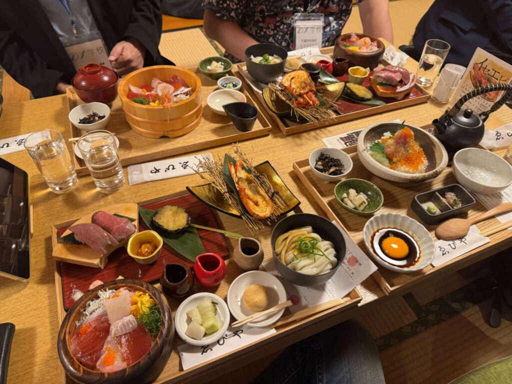 参加者各自が好きなものをオーダーして、伊勢海老や松阪牛をふんだんに使った料理や伊勢名物のてこね寿司や伊勢うどんといったメニューを楽しませていただきました。